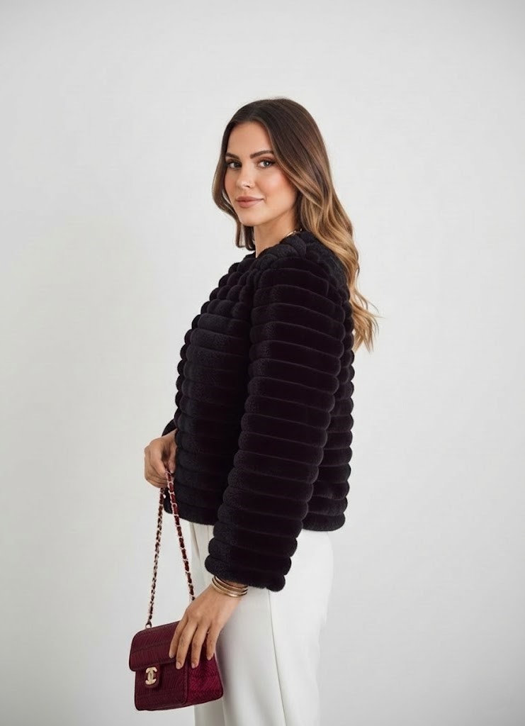 فروّ مستورد كثيف علشان دفا أكتر ولمسة مميزة فـ الفيت ،هيكون مناسب جداً للمناسبات والخروجات